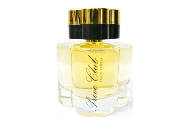 美麗典雅的玻璃瓶內,盛金黃色冰晶玉潔的香水.